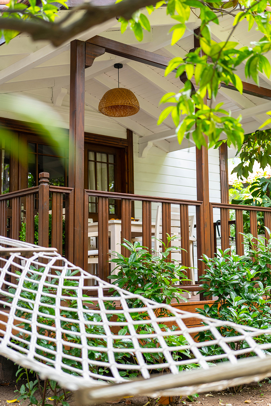 В зелёном саду, расположены три Белых домика в стиле простых, но комфортных деревянных построек. На лоне природы они выглядят как маленький рай среди неспешного течения дня. Это идеальные уголки для спокойного отдыха среди природы, где время течёт размеренно и легко. Благодаря мягким полам они безопасны для проживания с детьми, а их просторные веранды дарят особый комфорт во время отдыха на свежем воздухе. Каждый дом выполнен по единому плану: просто, удобно и гармонично. Здесь вы находитесь наедине с природой , сохраняя собственное ощущение уюта и гармонии.