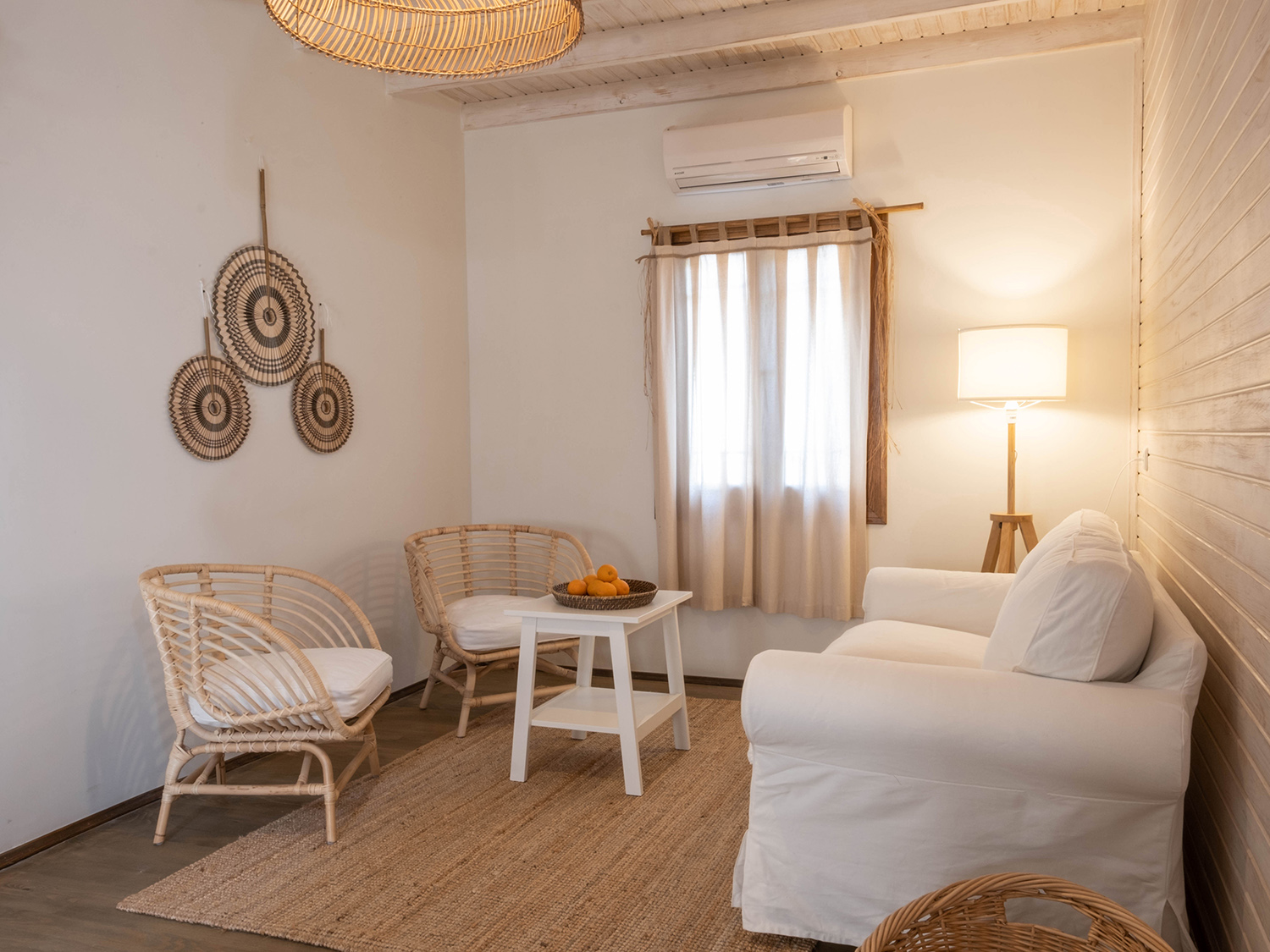 Bahçenin içinde, ahşap zeminli sade yapılarıyla üç ayrı Beyaz Ev. Doğayla iç içe, yavaş akan günlerin içinde küçük birer sığınak. Yumuşak zeminleri sayesinde küçük çocuklarla konaklamak için güvenli; verandalarıyla dışarıda geçirilen saatleri konforlu kılar. Her biri aynı planla tasarlanmış; sade, kullanışlı ve huzurlu.